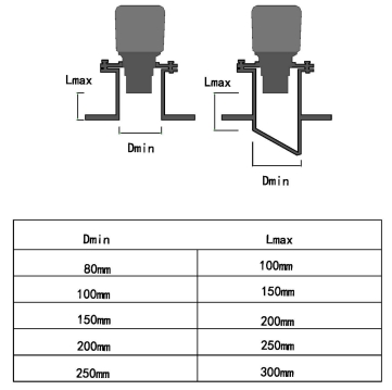 注意事项:若液位/物位能进入仪表的盲区,需安装延伸管抬高探头的安装高度,延伸管的内壁需光滑(无焊接缝合和对接缝)。若固定导波管应考虑减震措施,防止管内存在声波干扰。