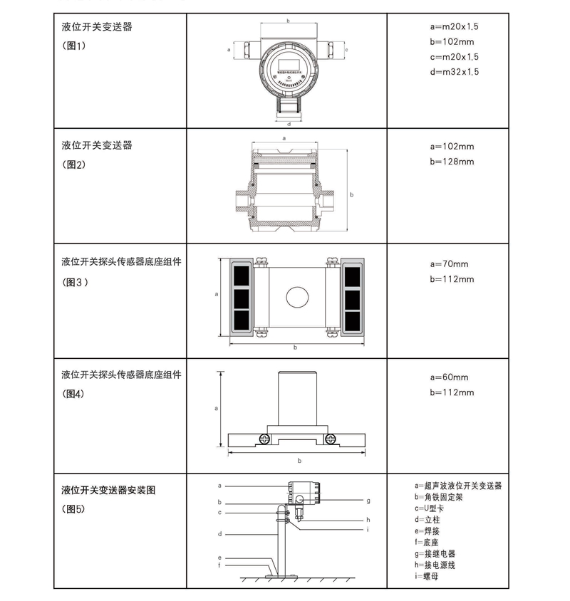 液位开关变送器固定参照图5、图7、图8、图9、图10